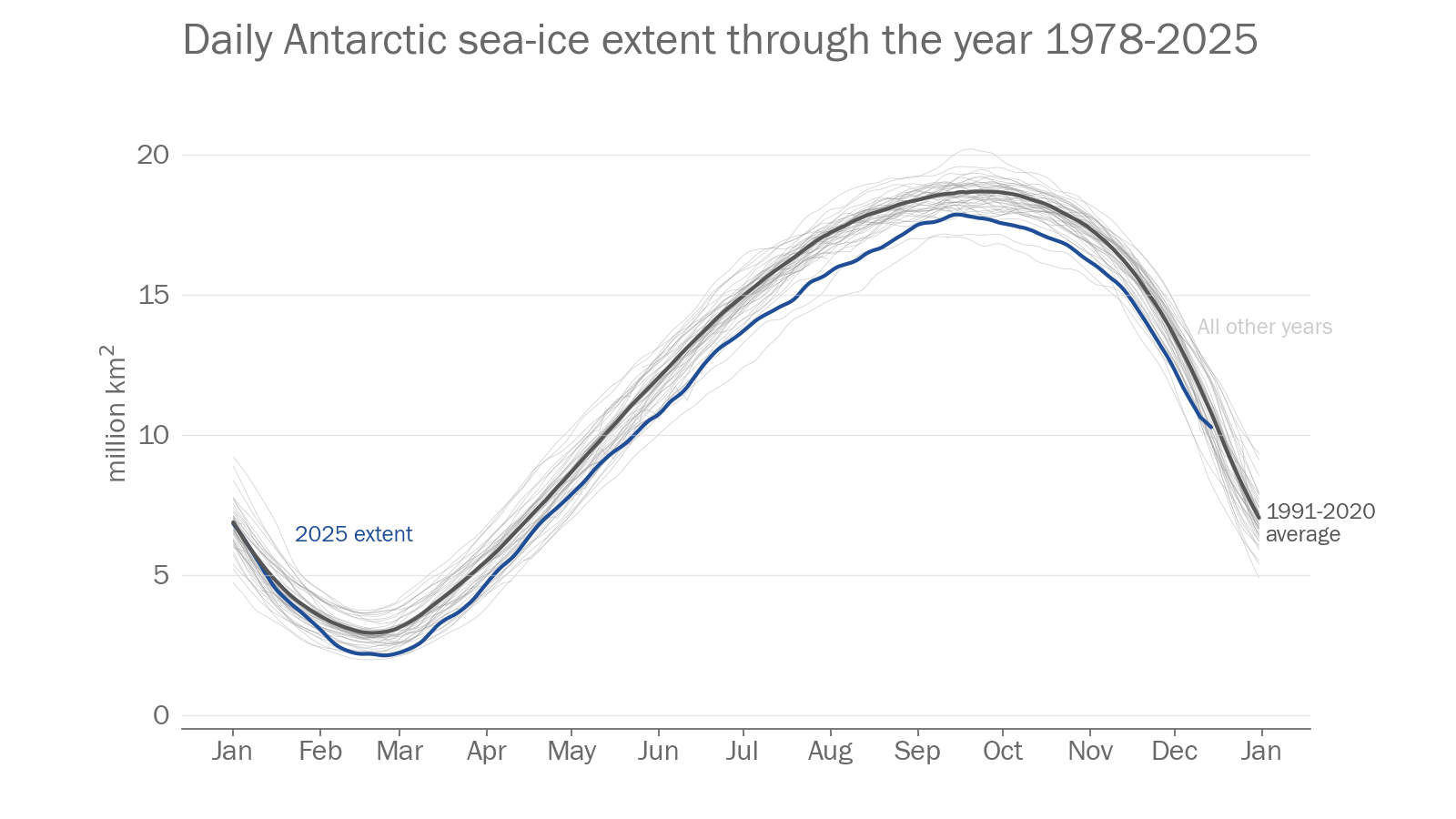 Acknowledgement: Fetterer, F., K. Knowles, W. N. Meier, M. Savoie, and A. K. Windnagel. 2017, updated daily. Sea Ice Index, Version 3. 1979-present. Boulder, Colorado USA. NSIDC: National Snow and Ice Data Center. doi: https://doi.org/10.7265/N5K072F8. [2025-12-15 11:26:54].